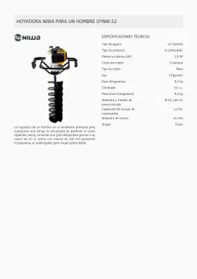 Ahoyadora Niwa OYNW-52 52cc 2T para un operador con broca 25x60 cm