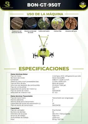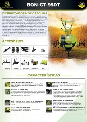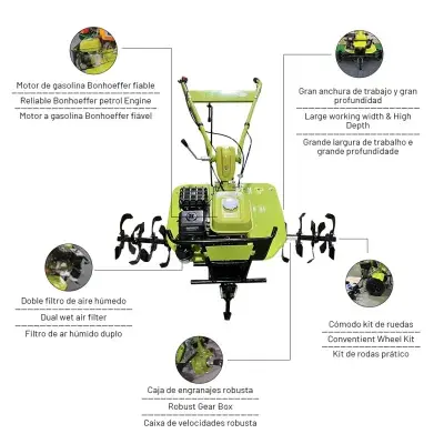 Mini Cultivador de Gasolina Bonhoeffer BON-GT-950T 208cc Motor 5,22kW Transmisión por Engranajes