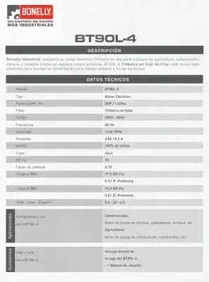 Motor Monofásico 3HP BM.AL112M-4 | Bonelly Industrial | Carcasa Aluminio