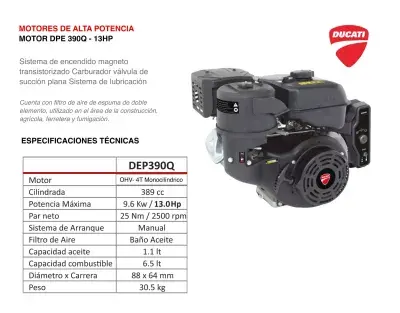 Motocultor Ducati DRT18E de 18HP 4 Tiempos - Gasolina