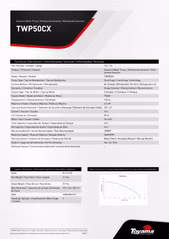 La Motobomba a Gasolina Toyama X 2.5" x 2" 6.5 HP es un equipo eficiente y versátil, ideal para riego agrícola, drenaje y suministro de agua en entornos industriales y de construcción.