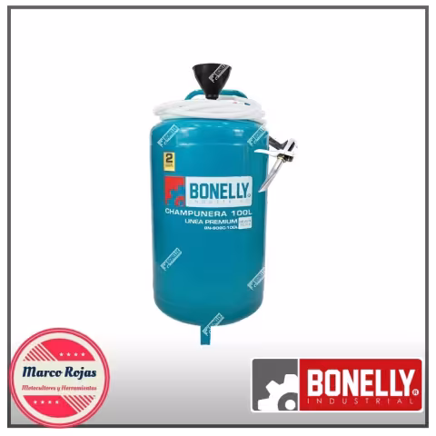 BONELLY INDUSTRIAL CHAMPUNERA DE HIERRO (ESPESOR 1.5MM)100 LITROS MANGUERA - 10 METROS PISTOLA DE ACERO - 8 BAR LINEA PREMIUM