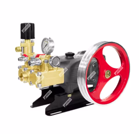 Cabezal de hidrolavadora heavy duty BNO-30C.AP, presión de trabajo 60 bar (870 psi), montado sobre base con volante, incluye kit extra de retenes y válvulas y cuenta con 1 año de garantía Bonelly Industrial.
