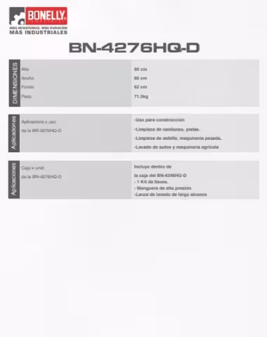 Hidrolavadora a Gasolina Bonelly BN-4276HQ-D – Línea Premium