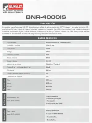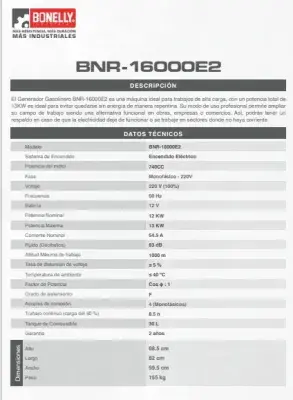 El nuevo modelo de generador B4T-13000 tiene alta potencia y durabilidad con un motor de gasolina de 19,5 hp. El producto es apto para empresas de alquiler, construcción civil, cuencas lecheras, telecomunicaciones, entre otras. El B4T-13000 cuenta con voltímetro, tiene control de voltaje con AVR, además de la facilidad de tener arranque eléctrico. El depósito tiene 40 litros, lo que proporciona una autonomía de 10,4 horas con el 50% de carga. En cuanto al motor, es monoclínico que garantiza un fácil mantenimiento y mucho más ahorro. Motor 4 golpes Potencia máxima 13kVA Voltaje de salida principal 220V Control de tensión AVR - Con cepillo Cargador de bateria 12V; 8.3A Capacidad del tanque 40.0L Autonomía (50% de carga) 10.4h Etapas fase única Ruido 79 dBA Dimensiones del producto (largo x ancho x alto) 850x865x810mm Dimensiones del embalaje (largo x ancho x alto) 1030x700x780mm Peso 160,5 kilos