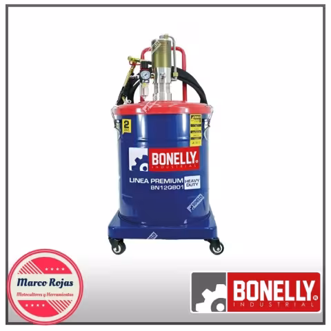 El Balde Engrasador Neumático de 40 Litros Bonelly Industrial es ideal para la lubricación eficiente, perteneciente a la línea premium de la marca.