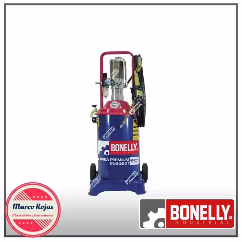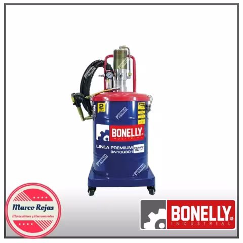 El Balde Engrasador Neumático de 18 Litros Bonelly Industrial es perfecto para la lubricación eficiente, perteneciente a la línea premium de la marca.