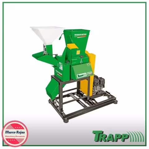 Trapp Triturador Multiuso JK-700G El Trapp Triturador Multiuso JK-700G es una herramienta versátil y eficiente, diseñada para triturar una variedad de materiales, incluyendo forraje y residuos orgánicos. Este modelo se ofrece sin motor, permitiendo al usuario elegir la fuente de energía más adecuada. Incluye una polea sin agujero de diámetro 80mm y una base universal, lo que facilita su instalación y operación en diferentes entornos. Modelo: JK-700G Tipo: Triturador multiuso. Motor: Sin motor (requiere motor adicional para funcionamiento). Polea: Sin agujero de diámetro 80mm. Base: Base universal incluida para mayor estabilidad. Peso: 55 kg El Trapp Triturador Multiuso JK-700G es ideal para aquellos que buscan una solución eficaz para el triturado de diversos materiales, garantizando un rendimiento óptimo y duradero.