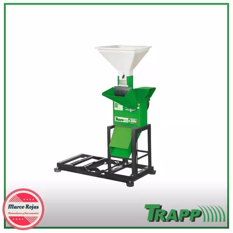 El TRAPP TRF 300G es ideal para cortar y triturar forrajes, moler semillas y cáscaras de cereales, maíz desgranado, caña de azúcar, ramas de yuca, hierbas, entre otros. Recomendase que sean trituradas varias veces para mejorar la descomposición. Caracteristicas Transmisión de fuerza a través de las correas; Cuerpo construido con chapa de 4,25mm de espesura; Láminas de corte (cuchilla) de acero especial; Lubricante: aceite SAE 20W-40; Todas las piezas recibieron tratamiento anticorrosivo y pintura de polvo de poliéster y polimerizado en estufa a 220°C, que le proporciona mayor durabilidad y mejor acabado; Acompaña 1 tolva para el grano (capacidad de 13 litros), 5 tamices (4 fijas en la caja y 1 tamiz “0” lisa dentro del triturador) 4 cojines,1 polea del motor, 2 correas y 1 kit manual; Garantía: 12 meses. Aplicación: Cortar y triturar forrajes, moler semillas y cáscaras de cereales, maíz desgranado, caña de azúcar, ramas de yuca, hierbas, entre otros. Recomendase que sean trituradas varias veces para mejorar la descomposición.