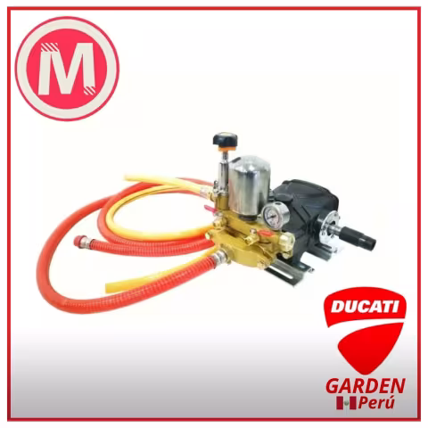 La Bomba de Fumigación Ducati 9211006BF convierte tu motoazada en una fumigadora portátil, con una capacidad de presión máxima de 580 PSI, ideal para fumigación y riego de cultivos y huertas.