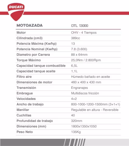 Motoazada Ducati DTL13000 de 13hp Gasolinero