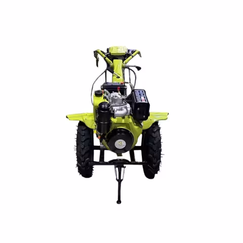 MotoCultivador Bonhoeffer BON-DI-950 El Mini Cultivador Bonhoeffer BON-DI-950 es ideal para la preparación intensiva del suelo en terrenos agrícolas. Con un potente motor de 10 HP y un diseño robusto de 156 kg, proporciona un trabajo de labranza profundo y eficaz. Ancho de labranza: 1350 mm Profundidad de labranza: 150-250 mm Potencia nominal: 10 HP / 3600 RPM Palanca de cambios: -1,0,2,1 (marcha atrás y dos marchas adelante) Masa estructural: 156 kg Neumáticos: 5.00-12 Estado de la hoja: 4 piezas, 5 grupos, hoja de tierra seca Método de conducción: Impulsado por engranajes Construido para resistir terrenos difíciles, el BON-DI-950 es la herramienta confiable para agricultores que buscan eficiencia y durabilidad en sus labores de preparación de suelos.