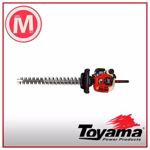 El Toyama Cortasetos (X) 2T 26CC es una herramienta potente y ligera, ideal para la poda y mantenimiento de setos y arbustos con precisión y comodidad.