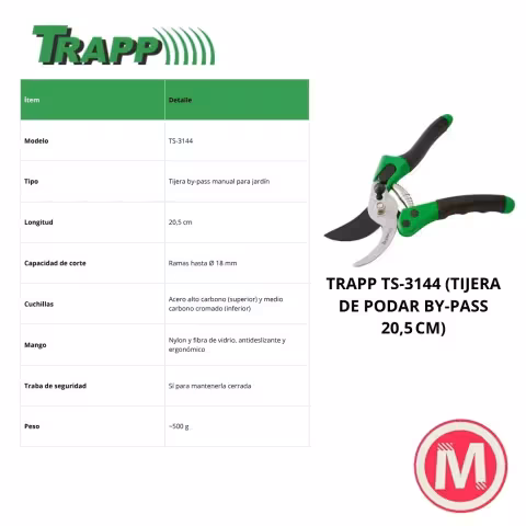 Trapp Tijera de podar para jardín By-pass TS-3144 - 20.5 CM