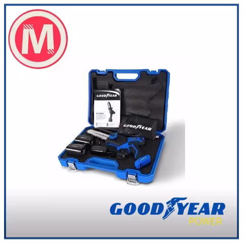 La Sierra de Mano Goodyear GY450HC de 450W y 6 pulgadas incluye dos baterías de 4Ah, ofreciendo potencia, precisión y autonomía para trabajos de carpintería, construcción y bricolaje.